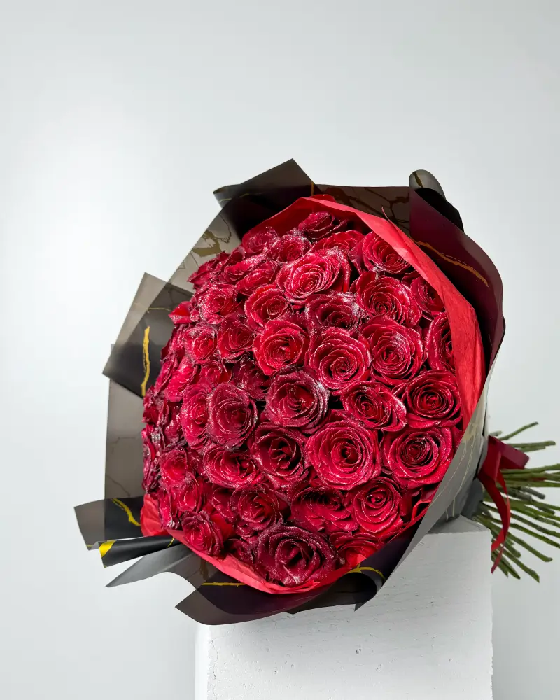Exkluzivní kytice červených třpytivých růží