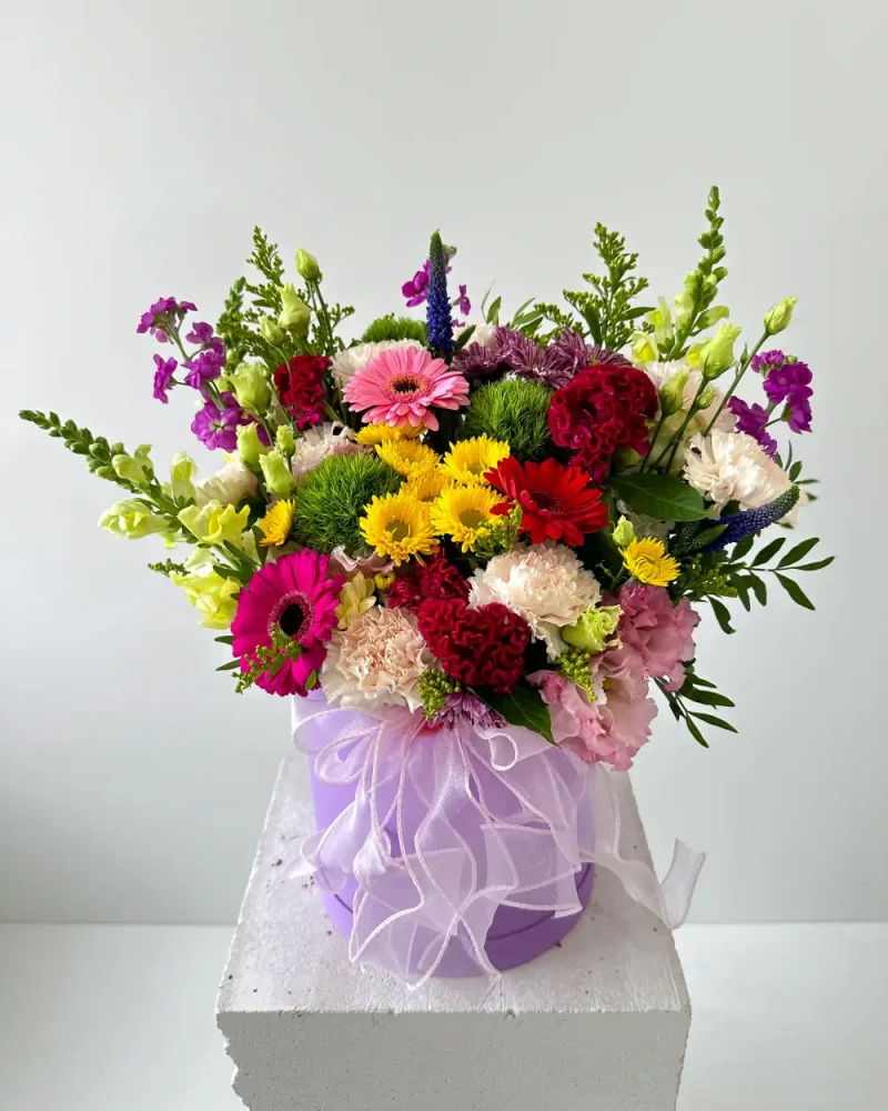 Máte chuť udělat někomu radost nebo si zpříjemnit svůj domov? Představujeme vám náš růžový květinový box s kombinací těch nejkrásnějších květin pastelových barev. Kytice, která vás okouzlí svou krásou a elegancí. Tento jedinečný box je složen ze sezónních i celoročních květin, doplněných o eukalyptus.Květinový box přinese jaro do vašeho života a dodá šmrnc každému prostoru. Tento flower box není jen obyčejným dárkem, ale i uměleckým dílem, které vytváří harmonii a pohodu ve vašem domově. Každý detail je pečlivě promyšlen a vytvořen s láskou našimi zkušenými floristy.