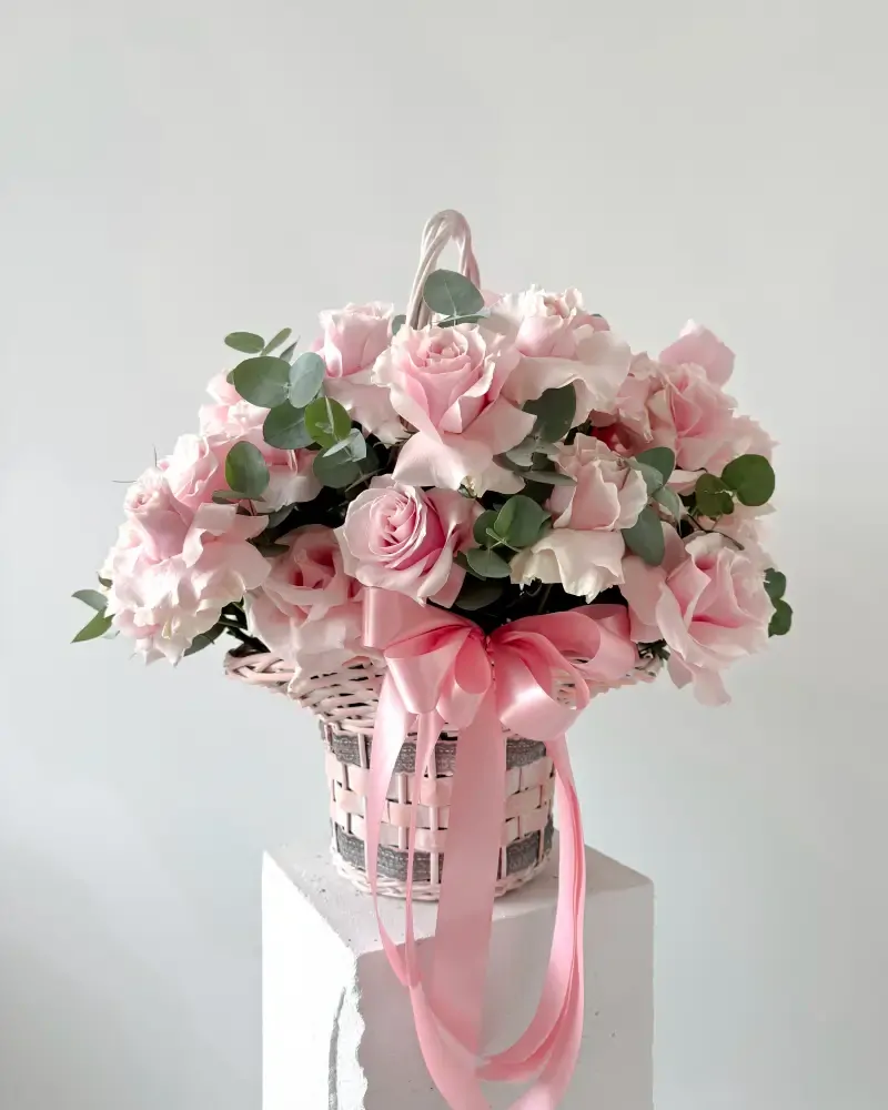 Květinový koš se světle růžovými francouzskými růžemiSkladem3 325 Kč/ ks
