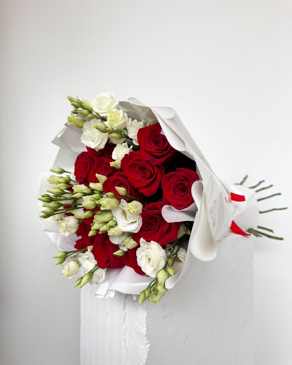 Připravte se na okamžiky plné lásky, krásy a vášně. Objednejte si naši kytici červených růží a bílých eustom ještě dnes a dejte vašim emocím volný průchod.