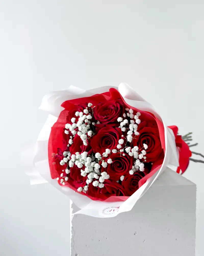 Co by mohlo být romantičtějšího než kytice červených růží? Tyto nádherné květiny symbolizují lásku, vášeň a oddanost. Tato kytice z růží však není jen tak obyčejná, je navíc doplněna o decentní gypsofilu, která dodává celé kompozici unikátní nádech čerstvosti a jemnosti.