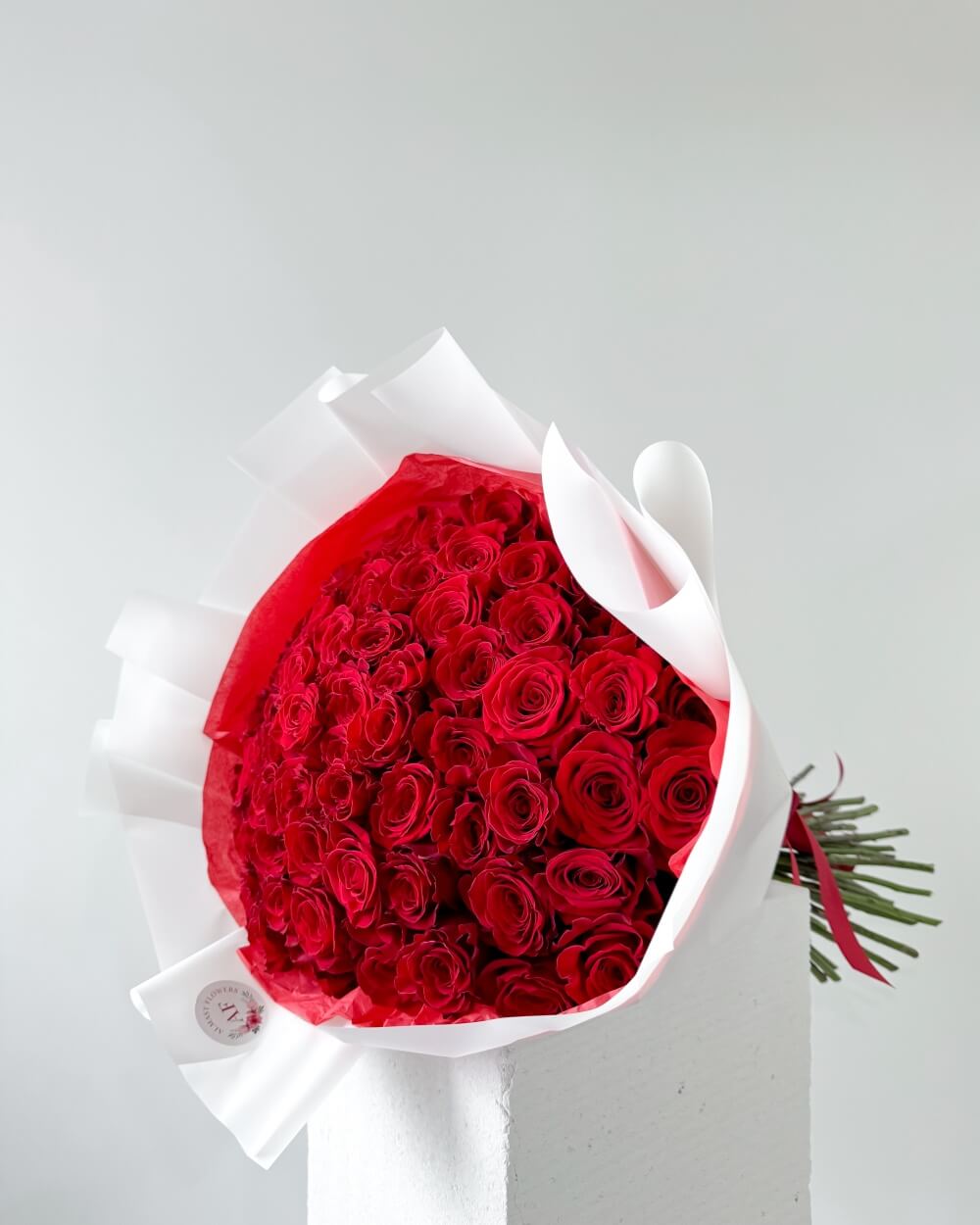 Představte si, jak otevíráte dveře svého domova a náhle spatříte nejkrásnější kytici červených růží, kterou jste kdy viděli. Ekvádorské růže s minimální délkou 70 cm, rudě červené barvy, které vás okouzlí svou krásou a vůní. Tyto luxusní růže jsou zabalené v elegantním ozdobném papíru a dopněné naším firemním logem na samolepce a saténovou stuhou.