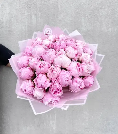 Kytice růžových pivoněk 31ks