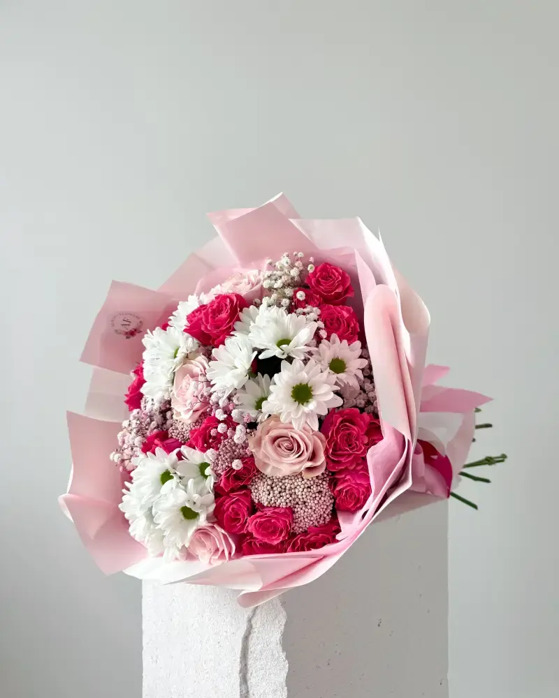 Naše bílorůžová něžná kytice je složená z pečlivě vybraných květi. Bílé chryzantémy, růže a trsové růže, doplněné gypsfilou a čerstvými květinami. Každý prvek této květinové kompozice byl pečlivě zvolen, aby vyjadřoval vaše city a vytvářel pozitivní emoce u obdarované osoby.
