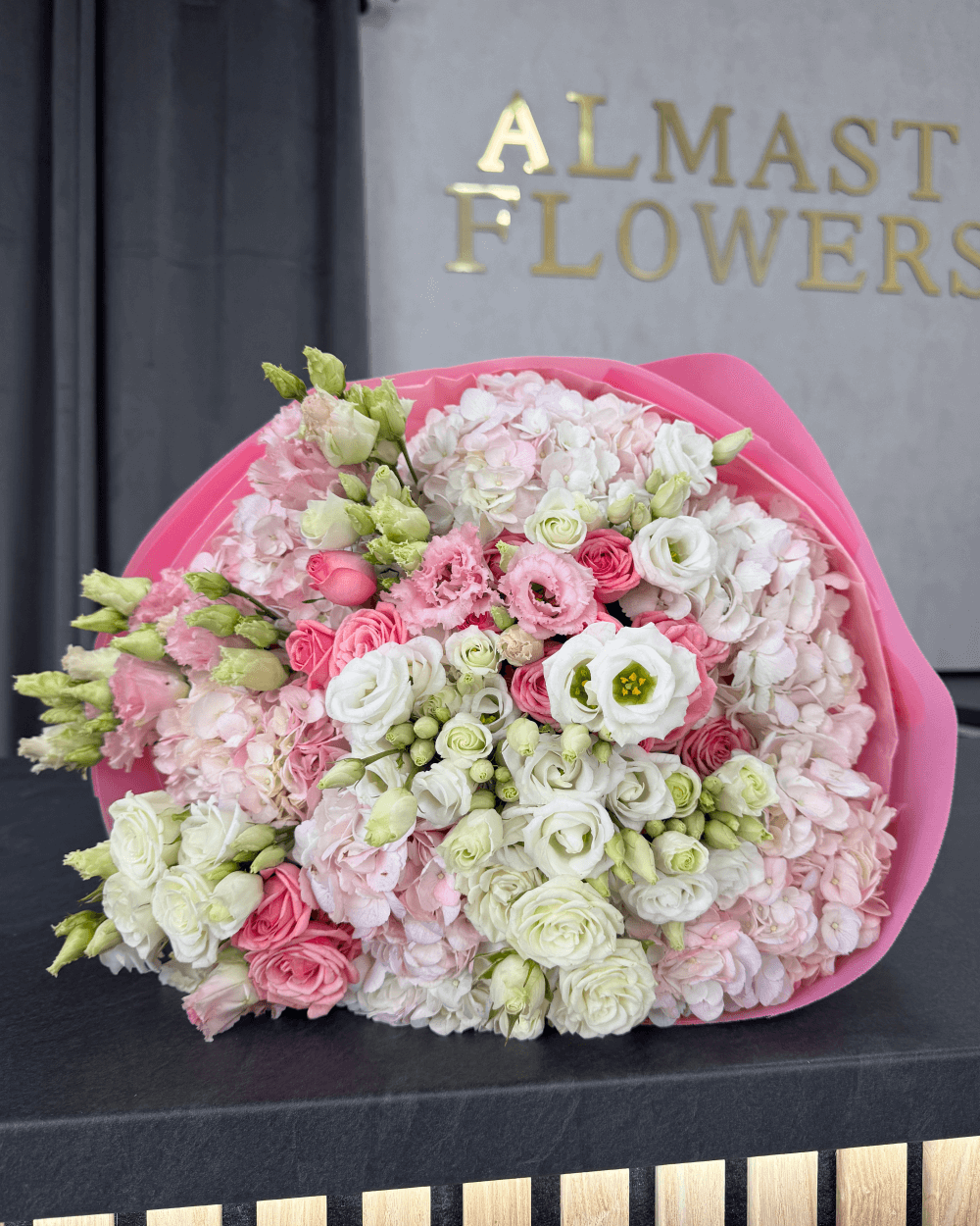 Představujeme vám naši kytici luxusní kytici složenou z květin v růžových odstínech. Kytice je nádhernou symfonií těch nejlepších a nejkrásnějších květin. Tato kytice je výjimečná svou jednoduchostí a přitom neuvěřitelnou krásou. Složená z růží, trsových růží, hortenzií a pivoněk je to opravdový sen pro každého, kdo ji spatří.