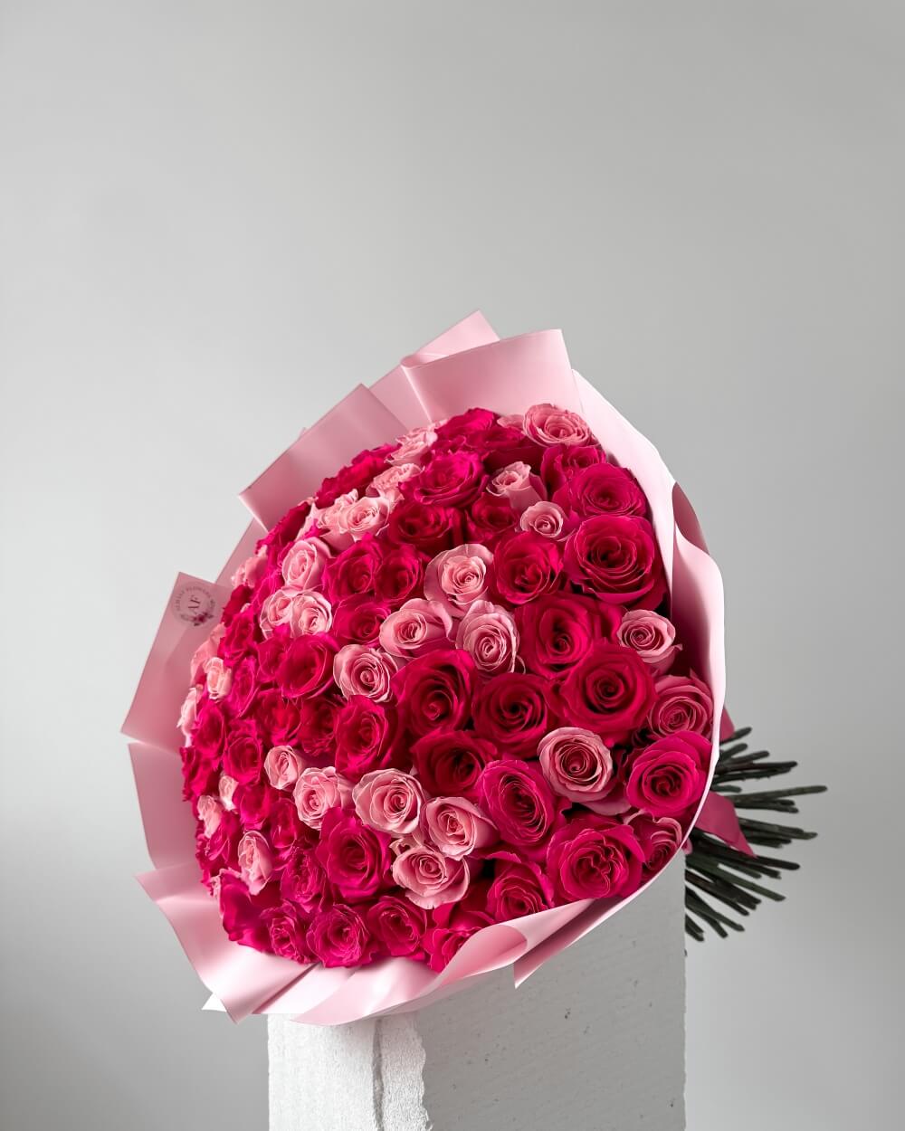 Naše růžové růže jsou pěstovány ve vybraných ekvádorských zahradách, kde se jim dostává péče a pozornosti, kterou si zaslouží. Díky tomu dosahují dokonalé růžové barvy a majestátního vzhledu. Každý jednotlivý květ je pečlivě vybrán a složen do harmonické kompozice, která odráží pocit štěstí a souznění.