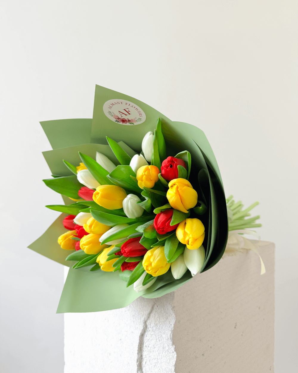 Společně tvoří moderní jarní kytici, která je univerzálním dárkem pro ženy i muže. Minimalistické balení podtrhuje svěžest tulipánů a nechává vyniknout jejich přirozenou krásu.