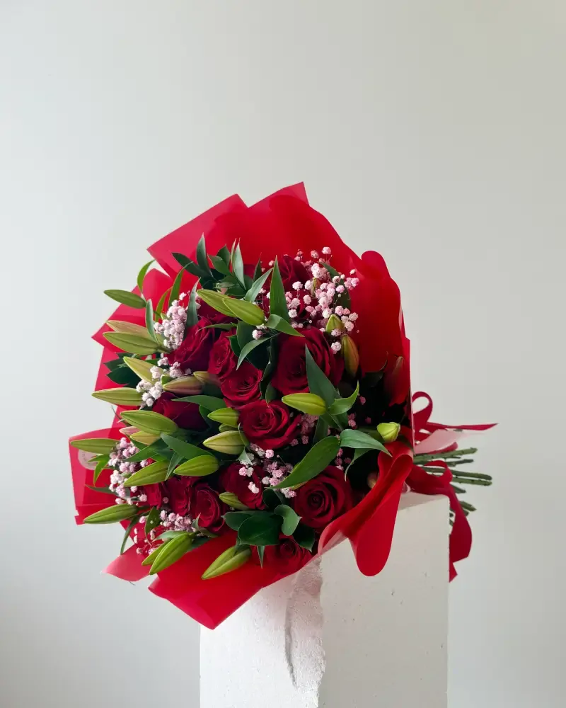Hledáte dokonalý dárek pro vaši milovanou osobu nebo jen chcete udělat radost své kamarádce či mamince? Nechte se unést tajemným kouzlem naší kyticí z červených růží a světle růžových lilií. Tento nádherný a honosný dar zpestří den každé ženy, které ho obdrží.