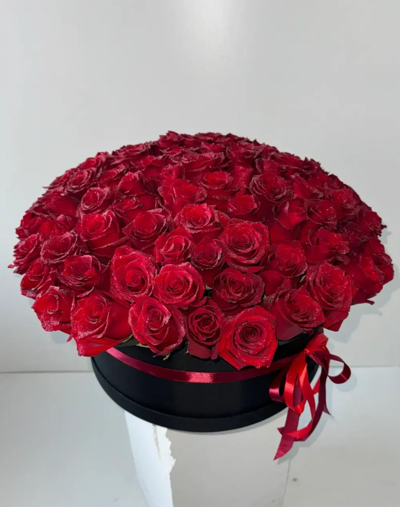 Luxusní flower box 101 červených třpytivých růží