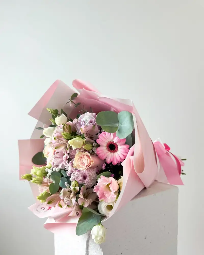 Naše Pastelová kytice je navržena tak, aby potěšila každého, kdo miluje barvy, ale ne ty příliš křiklavé. Její jemný design je doplněn svěžím eukalyptem a gypsofilou, což dodává celkovému vzhledu sofistikovaný nádech. Navíc je každá kytice pečlivě zabalená v našem světlém jemném papíru, zdobená naším firemním logem na samolepce a světlou saténovou stuhou.