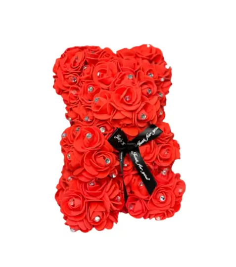 Medvídek z růží je jedinečný dárek, který vydrží navěky. Ručně vyráběný, doplněný o třpytivé kamínky pro ještě větší WOW efekt. Nezpůsobuje alergie a nevyžaduje žádnou péči, pouze vám bude dělat radost a krásně doplňovat interiér.