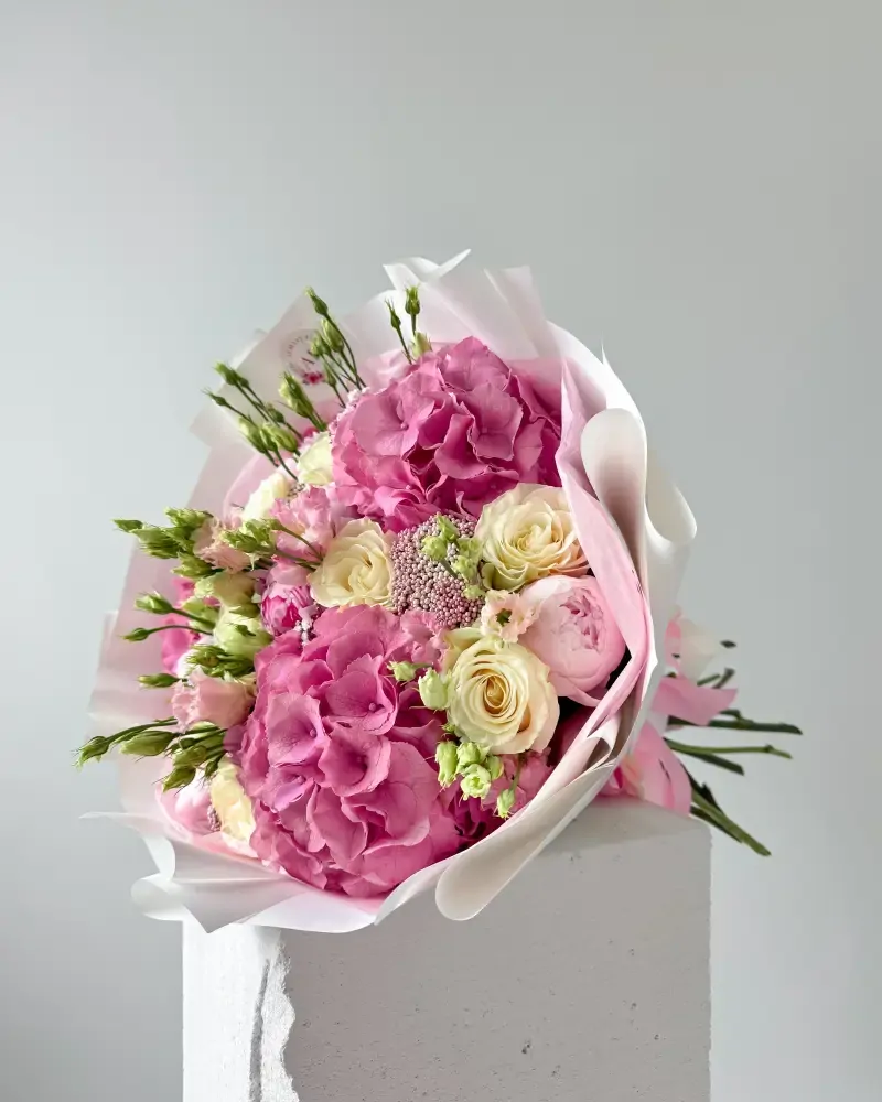 Roztomilá kytice hortenzií a růží