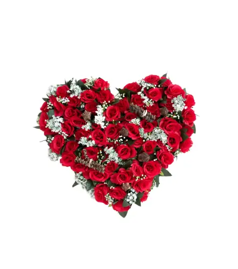 Umělé smuteční srdce plné rudých růží je krásný a dojemný způsob, jak vyjádřit svou upřímnou soustrast a poslat poslední pozdrav vašemu ztracenému blízkému.